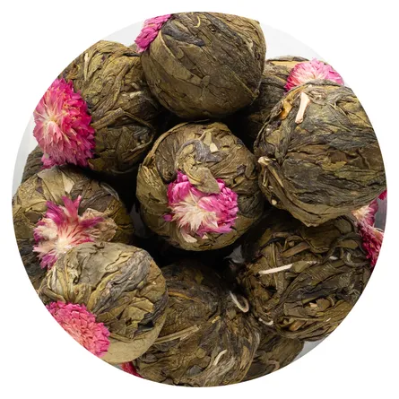 Утончённый и визуально изысканный купаж на основе зелёного чая, дополненного декоративными и полезными цветами гомфрены (амарантовый шарик). Этот чай не только радует глаз яркими пурпурными или розовыми акцентами, но и обладает мягким, гармоничным вкусом и природной пользой.